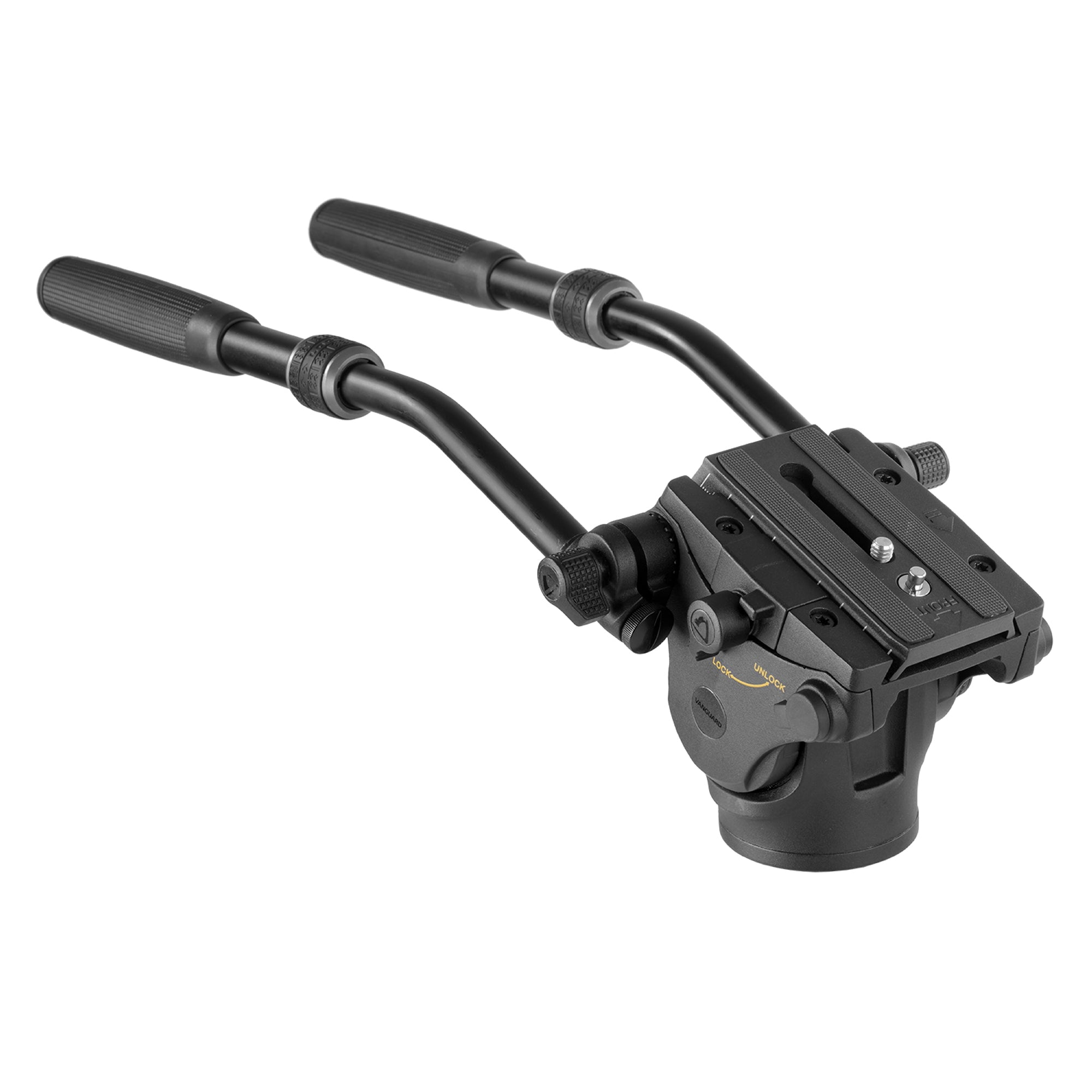 360° of pan and 90 to -60° of tilt are facilitated by the two included telescopic handles, with the option to attach both or just one to the fluid head. One bubble level makes leveling your rig intuitive. The head is constructed of aluminum to create a lightweight mounting component weighing only 2.6 lb.